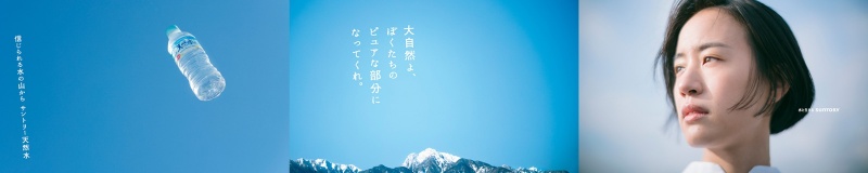 サントリー「天然水」新CM 雨あがる篇が公開されました。グラフィック撮影では寒さが残る時期ではありましたが、綺麗な空を背景に石橋静河さんを撮影。また山々に雪が残る南アルプスでの撮影では雨にうたれる石橋さんの決意漲る横顔が撮影できました。渋谷駅のサイネージやビルボードに清冽で豊かな水の世界が広がっています。是非ご覧ください。The new Suntory Tennensui commercial, Ame Agaru (literally, “The Rain’s Going to Lift”), has been released. Although it was still cold when we filmed the graphics, we captured Shizuka Ishibashi against a beautiful sky. When we were filming in the Southern Alps, with snow lingering on the mountains, we captured on video the determination in Ms. Ishibashi's face from the side as the rain falls on her. Throughout the signage and billboards at Shibuya Station, you get a sense of the cool, clear world of water and its abundance. Please take a look.