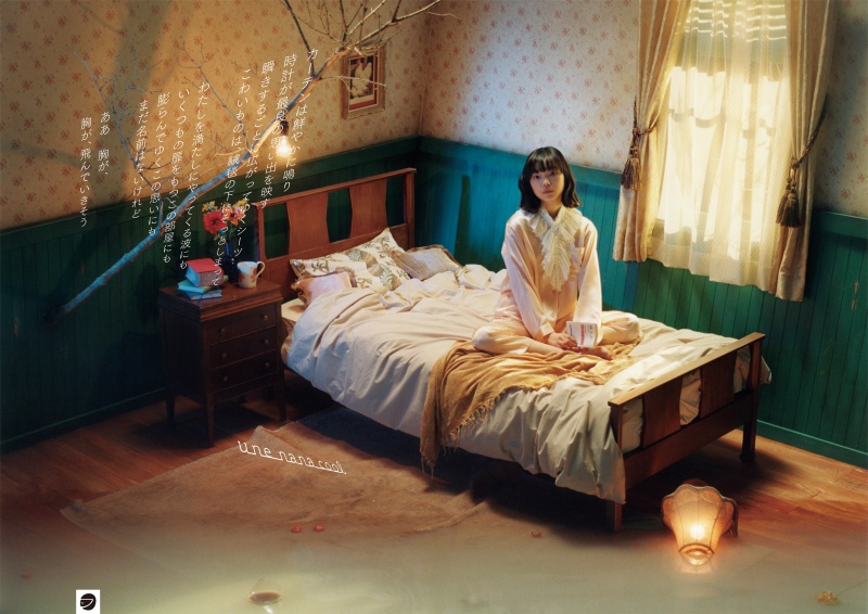 une nana cool 2021 古川琴音さんを異空間に誘うような世界観で撮影しました。ストーリーは作家 川上未映子さんの書き下ろし。ブランドプロデュースはれもんらいふの千原徹也さん。寝室にいるはずがいつしか本の世界と交わるような光景に・・・不思議な世界観をスタジオで撮影しました。For the filming of this une nana cool 2021 commercial we created a visual design that invites Kotone Furukawa into another dimension. We commissioned the author Mieko Kawakami to write the story. Brand production was by Tetsuya Chihara of Lemon Life. It looks as though she is in a bedroom, but before realizing, the scene transforms into a world of books... We filmed this world of wonder in the studio.