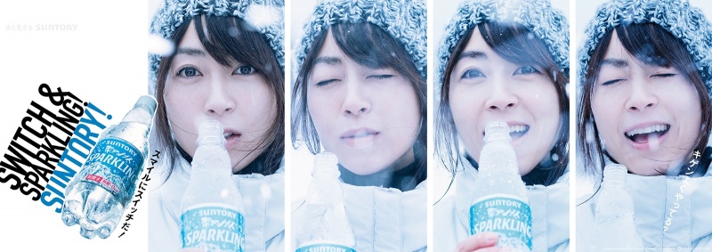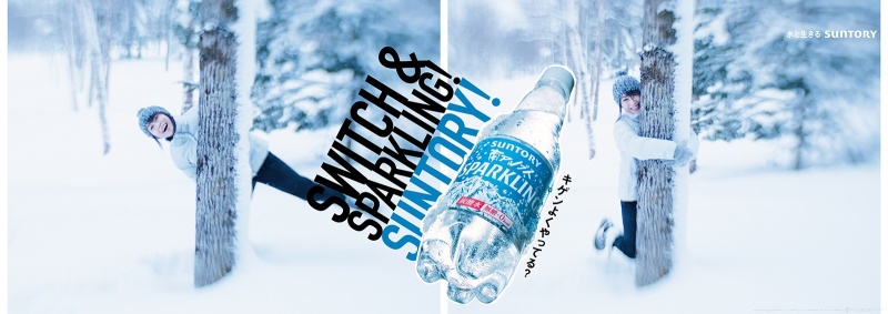 サントリー「南アルプスSPARKLING」の撮影に雪深い大地へ行ってきました。足が膝くらいまで埋まってしまう程に雪があり、雪中ハイキングの様相。寒い環境での撮影にも関わらず、楽しそうな宇多田ヒカルさん。スパークリングの泡のように沸き上がる笑顔、体全体で弾けているかのようなジャンプシーン、様々な表情や仕草を撮影することができました。For the Suntory Minami-Alps Sparkling shoot, Takimoto visited a land of deep snow. The scenario was snow hiking, with snow so deep it just about goes up to your knees. Despite the cold conditions for the shoot, Hikaru Utada looks like she’s having fun. Takimoto managed to get shots of her smile bubbling up like sparkling water, a jump scene where her whole body seems to burst, and a variety of actions and facial expressions.