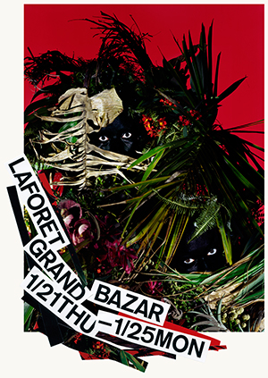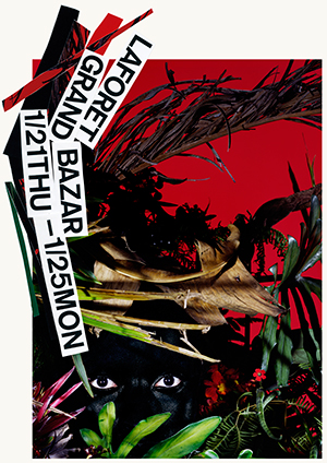 ラフォーレ グランバザールのポスターを撮影しました。ジャングルの中で獲物を狙うハンターの鋭い視線を通して表現されたポスターとなっています。ハンターの力強い目と熱気を帯びた赤色が印象的な作品となっています。Laforet's "Grand Bazaar 2016 Winter" poster. Mikiya Takimoto photographed the poster for Laforet's Grand Bazaar. The poster adopts the keen gaze of a hunter tracking his prey in the jungle. The hot red tones and powerful eyes of the hunter make for an image with impact.